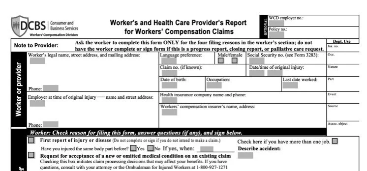 Oregon Injury Reporting STEP 1Select your store below to view your location’s Report for Workers’ Compensation Claims STEP 2Print, Fill out, and Submit Form 827 to Your Health Care Provider STEP 3 Injury Report Complete the Injury Report Form 1406 1426 1483 1510 1636 1662 1772 2351 1773 2352 2350 2445